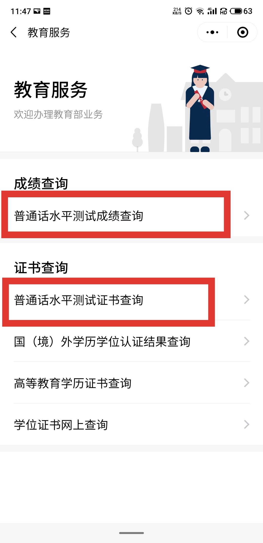 第二步:點(diǎn)擊『普通話水平測試成績查詢』